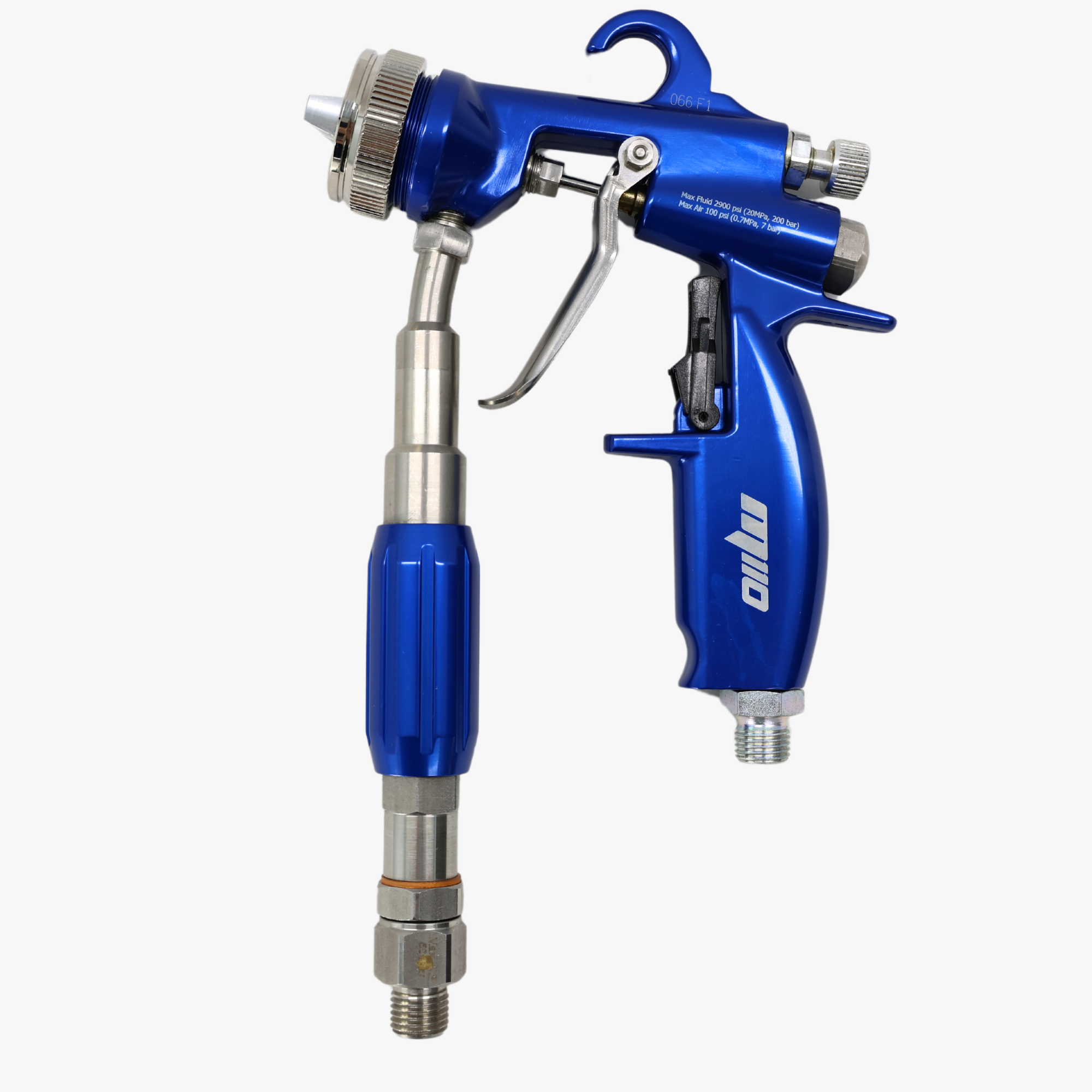 Professional Air Combi spray gun (air -supported Airless technology) with pneumatic needle gear (minimal leverage) - user pattern registered. Separate flat and round ray regulation. Adjustable pin seal made of Teflon. Rotatable air and color connection. Optimal focus position. Available nozzles (nozzle also available with pre -catering nozzle):